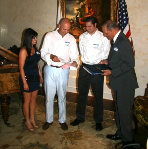 Lewisburg, TN - The Tennessee Walking Horse Breeders’ and Exhibitors’ Association (TWHBEA) is pleased to announce that Gin Martini, a registered Tennessee Walking Horse, has been presented to Master David Samudio, Ambassador from Panama. TWHBEA was proud to be part of this presentation, which took place on June 14 at the home of Denny Hastings. Guests at the well-attended event included TWHBEA President Marty Irby, who presented the Ambassador with a one year membership to TWHBEA and a copy of Tennessee Walking Horse: An American Tradition, State Senator Jim Tracy and several state officials. Gin Martini was generously donated by Bo Teague and Rachel Jernigan.