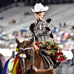 The Amateur 15.2 and Under World Grand Championship followed, and with all four entries having prior Celebration winning records, it was a difficult task to tie the class. But it was too hard to resist the horsemanship demonstrated by Celebration elite Janice Fostek, who delivered in her really regal form as always — serving as a role model for many young ladies watching — aboard her trusty partner, Marty McFly.