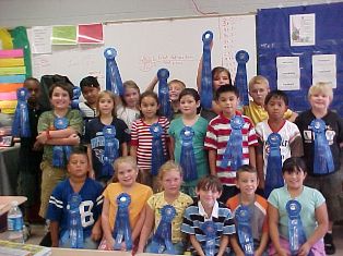 I wanted to share with you the joy that children in my classroom are getting through your donation of extra ribbons that were not used at the International and other WHOA events. I have used the ribbons as an incentive for the children to become better spellers and to learn their multiplication tables. I suspect my class has the highest spelling average of any class at Stewartsboro Elementary. I give the test early on Friday mornings and they can't wait for me to have a chance to get the papers graded so they can get their ribbon. They learned the first week that the color of the ribbon plays no part in this. The idea is just to GET a ribbon. They love to parade to the lunchroom and in the dismissal line in the afternoons with their ribbons hooked into the necks of their shirts. I have had parents tell me that they have never had their child ask them to help them learn their spelling words before. Parents have also told me that their child's room is plastered with ribbons hanging all over the walls.
