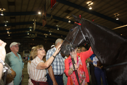 Eighty-four year-old Norma Shumate smiles after she rides WC Ultra Copy’s Dark Shadow. This was her first time on a padded walking horse and she had not ridden for seventy years.