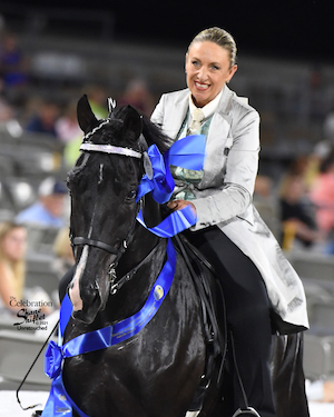 In 2022, Blacklist walked to the Trail Pleasure World Grand Championship with Carrie in the saddle for Sherry. Both Blacklist and Carrie have won world grand championships in the past, but this was their first as a team. Blacklist had nine blues in 11 classes in 2022, three of those at the Celebration. Sherry rode to first in the Owner-Amateur English Trail Pleasure class.