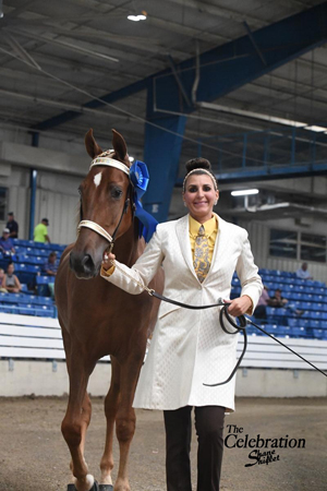 Well Hello Darlin’ made an impression during Wednesday evening’s Futurity when she won the yearling fillies class. Saturday morning, the filly earned two more Celebration wins, once with Kelly Richards in the amateur in-hand yearlings class and two classes later with Lynn Womack in the open yearling class for the mares and geldings.
