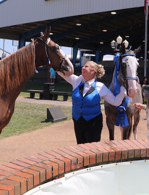 Checkpoint Charlie and co-owner Harper Grider were the first place tie in the Owner-Amateur Youth 12-17 Western Trail Pleasure class with all six programmed entries competing. Tamara Hader of Bainbridge, Georgia, Jared Carrier from Gallatin and Grider from Columbia, Kentucky, are the owners. Checkpoint Charlie and Carrier won top honors Wednesday in the Owner-Amateur Flat Shod (Canter) class. Checkpoint Charlie remains undefeated in six classes in 2024. Walking out with a red streamer was Laughs And Giggles who was ridden by Emma Carter for Karen Doss and Gary Doss. Diva By Daddy and owner-rider Maddie McMorrow were third.