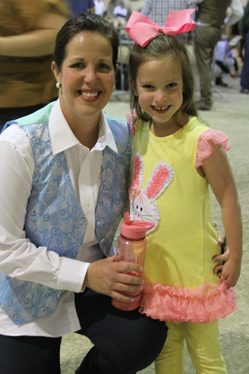 Jill and Madalyn Smith show off Madalyn's precious Easter outfit at the Kick Off Classic.